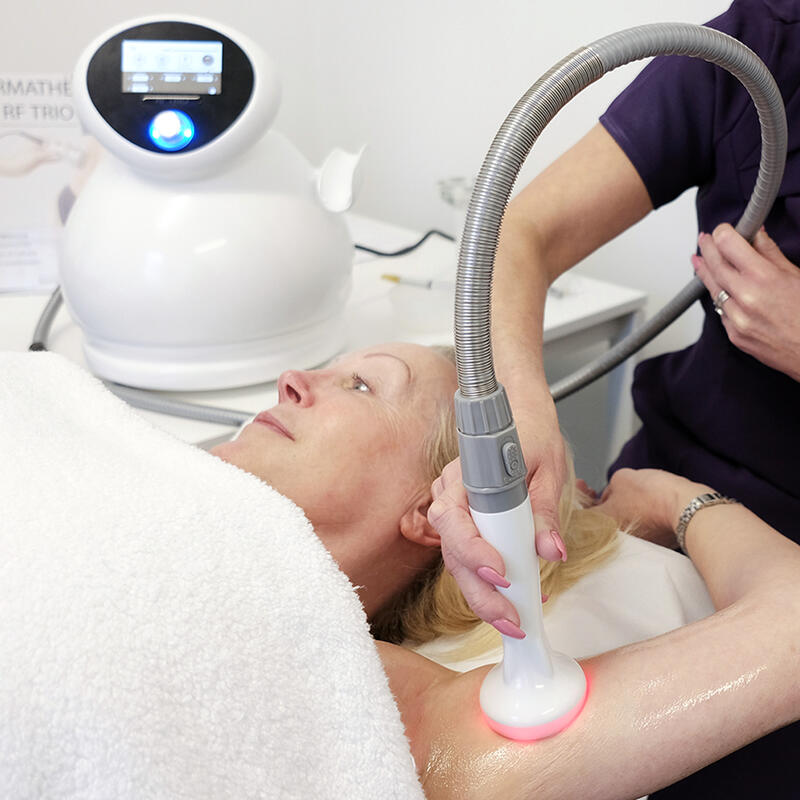 The perfect treatment to lift, firm and tighten sagging bingo wings.  For best results, a course of 8-10 treatments is recommended (1 per week) with a maintenance every 4-6 weeks.  Using a combination of Radio Frequency, Polychromatic Light Therapy and Vacuum Lymph drainage, our Dermatherm RF Trio is perfect for improving the appearance of cellulite and stretchmarks and toning areas of sagging skin.  Booking a course of 10 attracts a discount of 15% saving £112.50